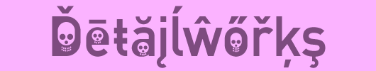 In this variant of the classic DIN 1451 Mittelschrift all the counters have been replaced with stylized skull images. A simple but effectful transformation - perfect for Halloween and Día de los Muertos :)