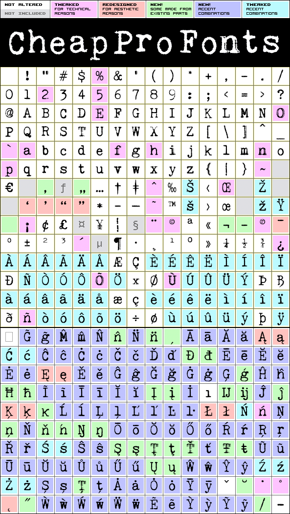 Kingthings Trypewriter Pro is a professionally reworked font that contains an extended character set for setting text in 65 languages requiring more than the basic A-Z!